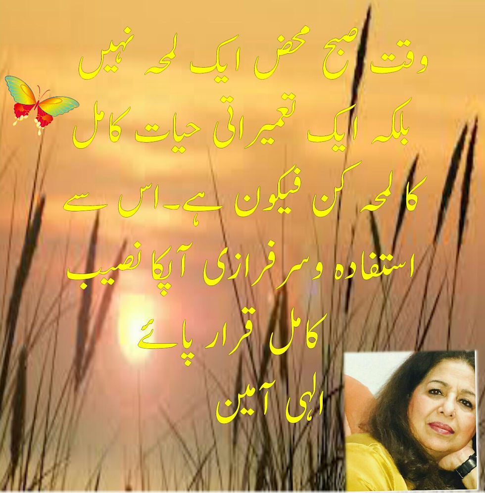 🌹سلام صبح قبول ہو🌹صبح کے آغاز دلربا کی پاکیزہ انرجی آپکے لیئے پیغام خیر و عافیت بن کر زندگی کو تابندہ و پر طرب بنائے اور پھر اسےہمیشہ قائم و دائم رکھے🌹ہر لمحہ حیات سرور کی راہوں اور گزرگاہوں کا شہنشاہ لا شریک قرار پائے🌹دعائے رباب آپکے تصور کی ہر وادی کو حقیقت کا جہان بنانے کی معاون بہ تسلیم و ادائے مشیت ایزدی ٹھہرئے🌹جہاں معرفت و آگہی کا حصول آپکے سکون قلب کا خزانہء انمول بنا نصیب کا حق قرار پائے 🌹سوچوں کی مثبت انرجی جہاں رنگ و نور کو حیات تعمیری کی معراج عطا کرے اور حقیقتوں سے باخبر سکھ کی چاشنی اور خوشی کی آبگینی سے مخمور فرمائے🌹وقت صبح محض ایک لمحہ نہیں بلکہ ایک تعمیراتی حیات کامل کا لمحہ کن فیکون ہے۔اس سے استفادہ وسرفرازی اپکا نصیب کامل قرار پائے🌹الہی آمین 🌹